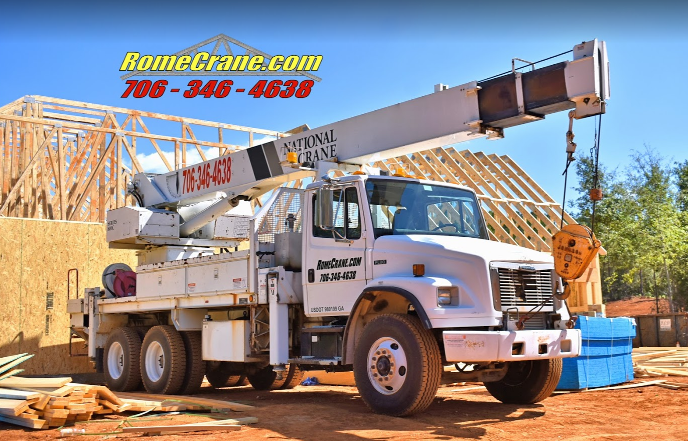Business InformationRome Crane Rental National Crane with 80 feet of reach. Crane Service, Roof Trusses, Metal Buildings, HVAC Installs, Sign Installs, Pole Barns, House Trusses, Garage Trusses, Chicken Houses, Steel Erection, Boom Truck Rental 20 Years in Business! Rent Me! Call Chris Boyd or go online to romecrane.com for crane rental near Cartersville, Georgia, Rome, eastern Alabama, and more!